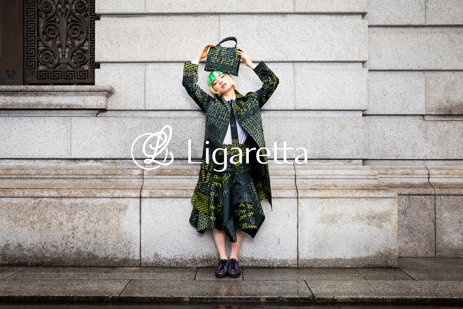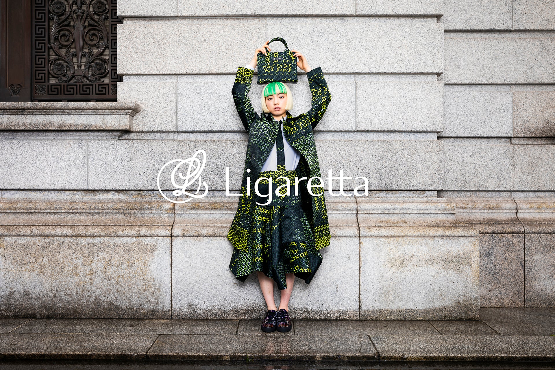 主に街路灯フラッグのアップサイクリング素材から製造されており、まち由来の素材を循環させています。廃棄削減と素材循環をめざしながら、まちの物語をつなぎ、まちを纏う、そんなライフスタイルを「Ligaretta」は提案しています。